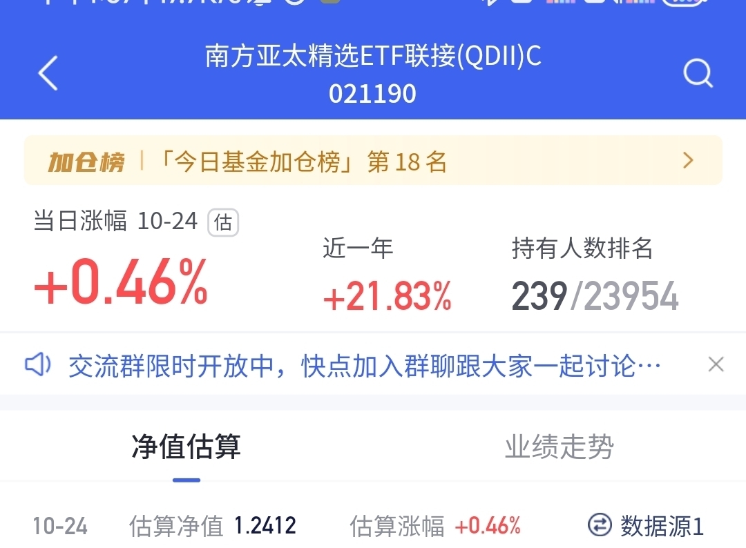 南方亚太精选太给力了!我的持有收益率都快12个点了,今天还在涨超1%,完全没让人