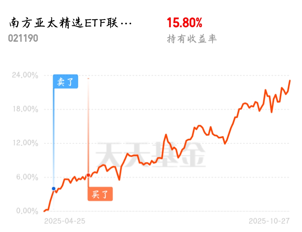 昨天的$南方亚太精选ETF联接(QDII)C$再次给了我一个大大的惊喜,再次强势