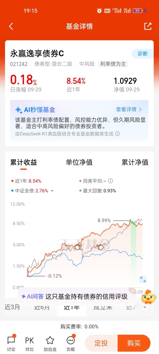 在当前牛市行情持续但波动加大的背景下,配置30-50%仓位于固收+资产是较为稳妥的选择,永赢逸享债券C021242是固收+基金,今晚净值上涨收18个大蛋,近三个月收54个蛋,近六个月收311个蛋,真乃收蛋神器,业绩非常优秀。