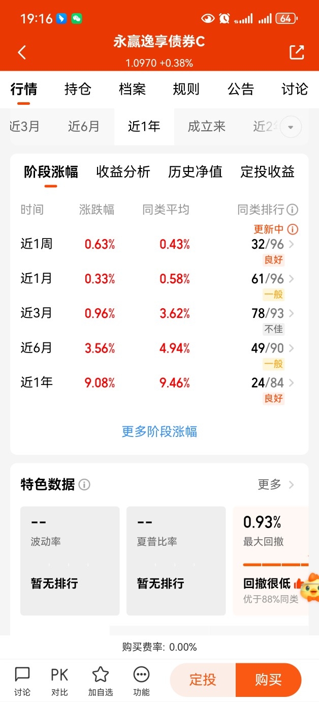 9月完美收官啦!$永赢逸享债券C$ 今天喜收38个大蛋,已经连续五天上涨啦!我们来看看业绩,近一周收63个蛋,近六个月收356个蛋,近一年收908个蛋,不愧是一只低波固收加,各阶段业绩优秀,月月正收益,爆发性也极强,用来均衡配置不错。#DeepSeek、寒武纪同步发布引关注#