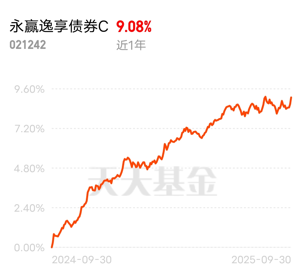 $永赢逸享债券C$这基股债搭配,而且一年涨9个点,确实业绩表现不错