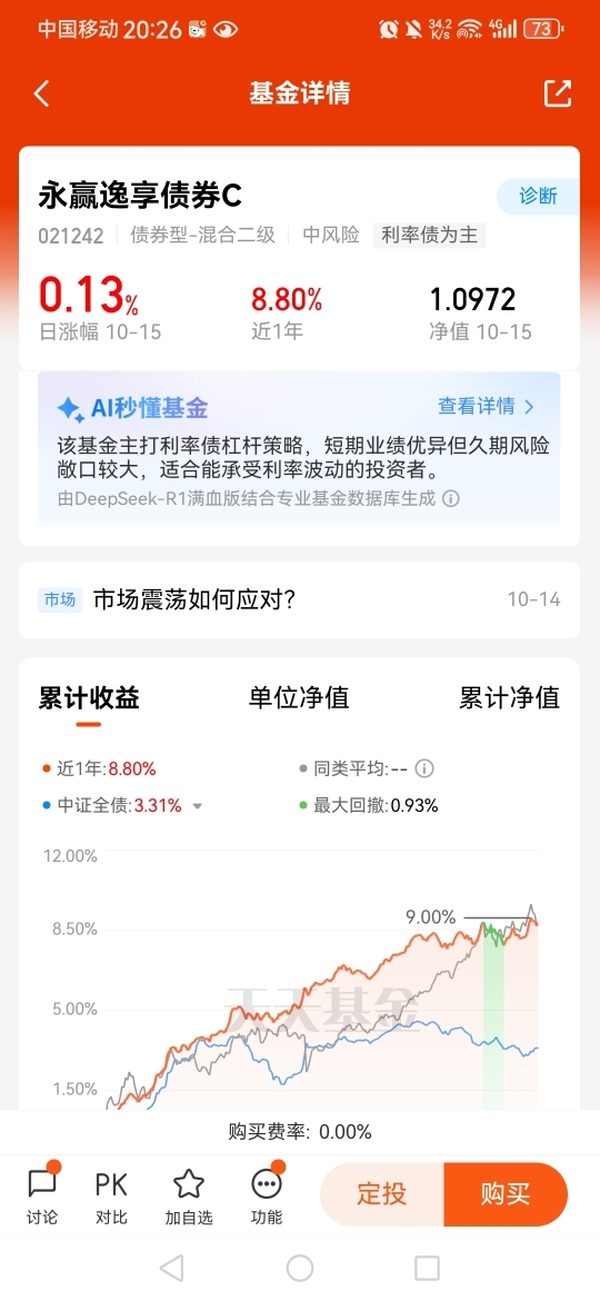 $永赢逸享债券C$ 今日收下13蛋,近一年涨幅更是去到+8.80%,对于绝大多数稳健类用户来说是个不错的选择;中长期更值得期待,只配置权益风险大,当下均衡配置更适宜。多种债券组合,更有弹性!不想大起大落的,稳稳的攒蛋也不错!#稀土价格暴涨37%!稀土板块狂飙#