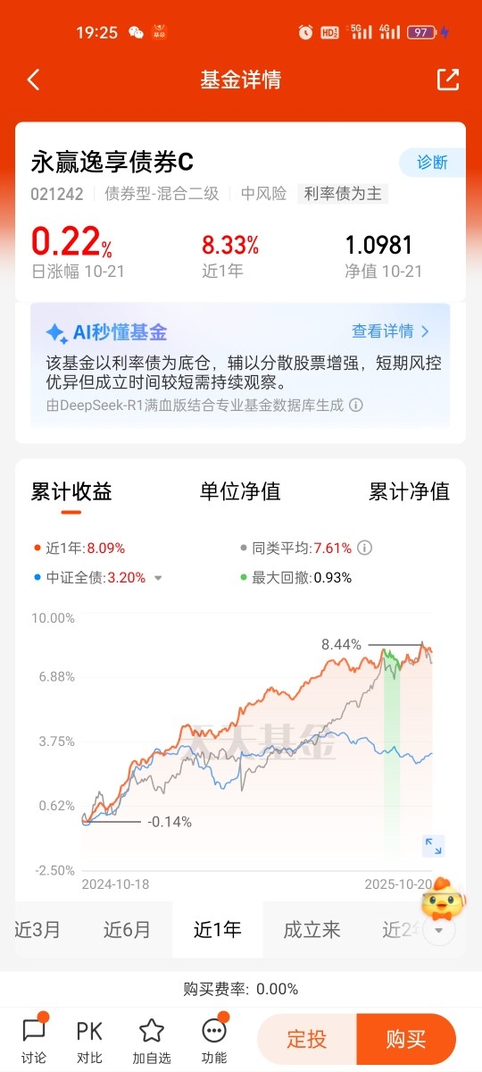 今天债券涨幅不错,这周继续拿稳了问题不大,永赢逸享债券C021242今天又收获2