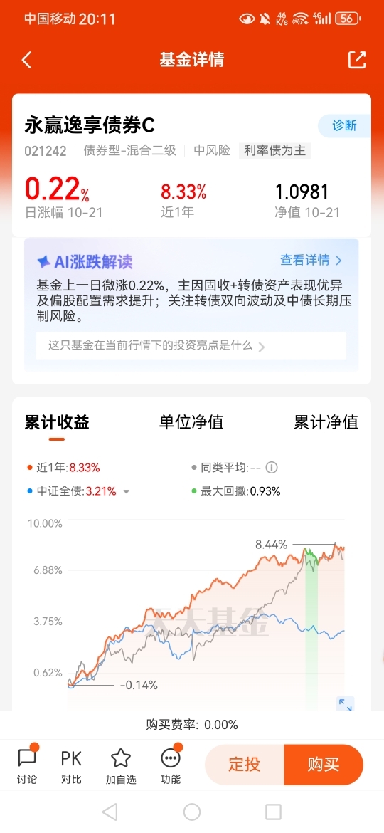 #人形机器人入厂经济账曝光:两年回本# 固收类基金凭借"股债搭配"的特性,既能发挥债券资产的稳定作用,又能适度参与权益市场,$永赢逸享债券C$ 近一年涨幅+8.33%,长期业绩优秀。在货币市场收益率逐渐逼近1%的情况下,居市场收益率逐渐逼近1%的情况下,居民投资者将寻找新的投资机会,而混债基金作为一种固收与权益资产的过渡品种,自然受到热捧。