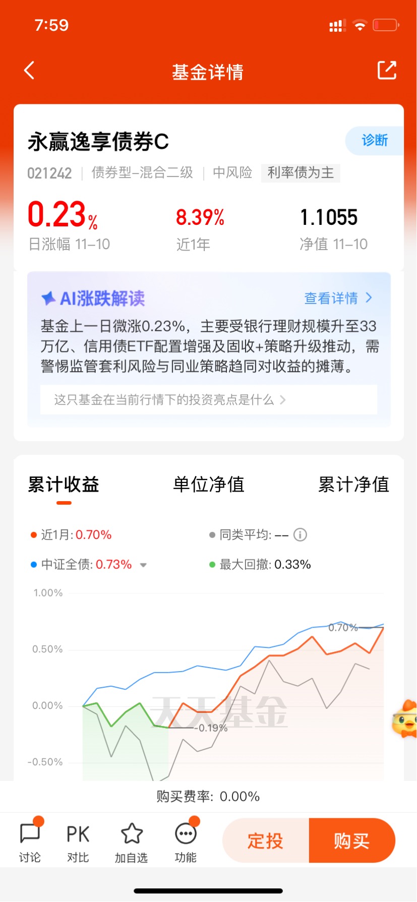 $永赢逸享债券C$ 今天收了23个蛋,四天三涨,状态不错嘛!永赢逸享是聚焦利率债的混合二级债基,用的杠杆策略,各个阶段业绩表现都还不错,近半年252个蛋,近一年839个蛋,可见型利率还不错,从这里的净值表现来看,这里波动小,回撤控制的也不错,都说股债搭配收益翻倍,值得期待了!#科技热点摊开业啦#