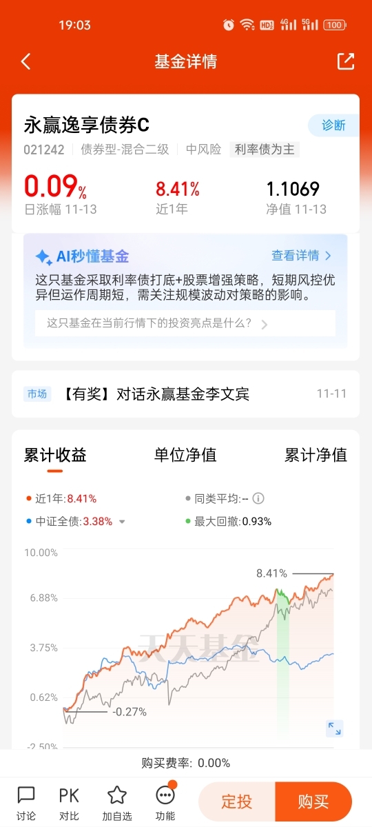 债券基金结束回调,今天企温回升了,永赢逸享债券C021242今晚下了9个大蛋,近