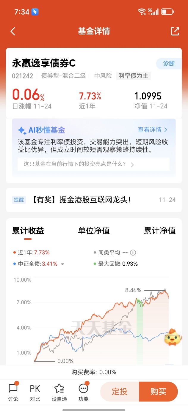 $永赢逸享债券C$ 以利率债和信用债为主,加上少量的可转债和股票,博取超额收益。今天收6个蛋,近六个月收230个蛋,近一年收773个蛋,收蛋能力还是很强的。固收+通过科学的资产配置实现财富的稳健增长,在稳稳的幸福中等待持续的惊喜。#军工板块活跃!机构:行业或迎业绩拐点#