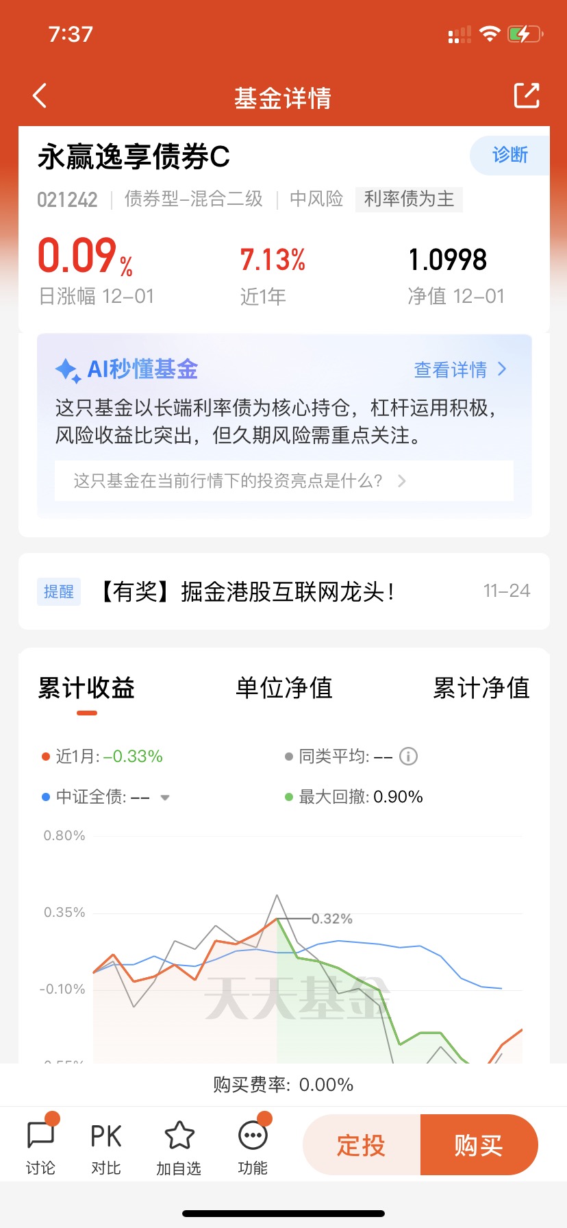 $永赢逸享债券C$ 今天收了9个蛋,12月开门红啊!近半年244个蛋,近一年713个蛋,业绩表现还不错!永赢逸享是股债混合偏债的固收加基金,主要以信用债和利率债固收打底,可转债和少量的股票来增厚收益,这样的配置策略可以说进可攻退可守,抗波动的很了!#12月基金投资策略#
