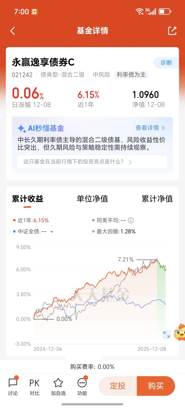 今天股债双收,固收+$永赢逸享债券C$以信用债和利率债固收打底,可转债和少量的股