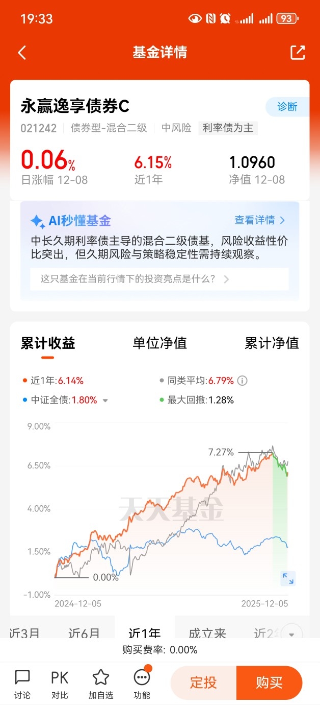 $永赢逸享债券C$ 在上周五收了24个大蛋后,今天再次收6个蛋,近一年收615个蛋,可见该产品弹性是非常不错的,同时回撤也非常可控,从历史业绩可以看到,成立至今最大回撤仅用时15天就修复了,回血出坑速度也非常快,能涨抗跌,均衡配置我看行。#12月基金投资策略#