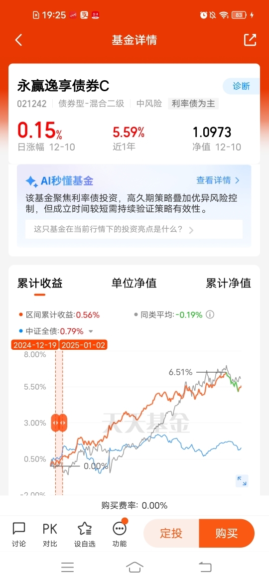 $永赢逸享债券C$ 收蛋能力不错,低波动固收+涨多跌少,今晚更新收15个蛋,近三个月收93个蛋,近半年收171个蛋,近一年收559个蛋,中长期更有动力,近期行情震荡,增加固收+配置,让收益稳一点,只配置权益风险大,当下均衡配置更适宜。多种债券组合,更有弹性!不想大起大落的,稳妥点也不错!#铜价刷新历史高点!#