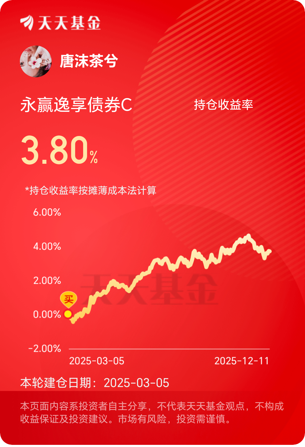 $永赢逸享债券C$最近市场波动不太平稳,继续守着固收加了