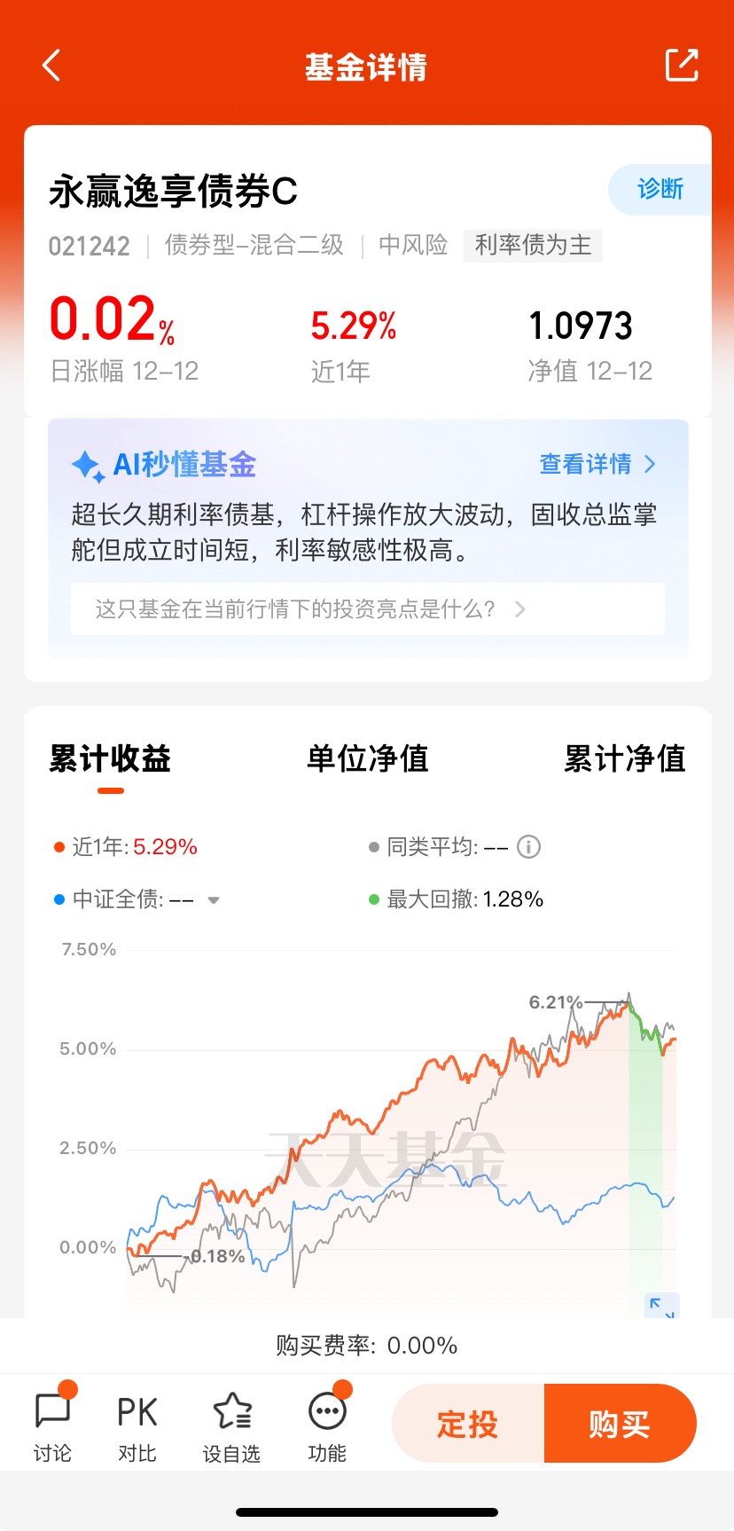 #美联储宣布降息25个基点 如何布局?# 固收产品通过配置少量权益资产或可转债,有机会在市场上涨时获取超额收益,同时保持较低的波动水平,实现“稳中求进”。$永赢逸享债券C$ 今天收2个蛋,近三个月收61个蛋,近六个月收149个蛋,近一年收529个蛋,长期收蛋能力不错。固收类产品在股市震荡时,债券资产提供稳定支撑;股市上涨时,权益部分贡献收益,实现“进可攻、退可守”。