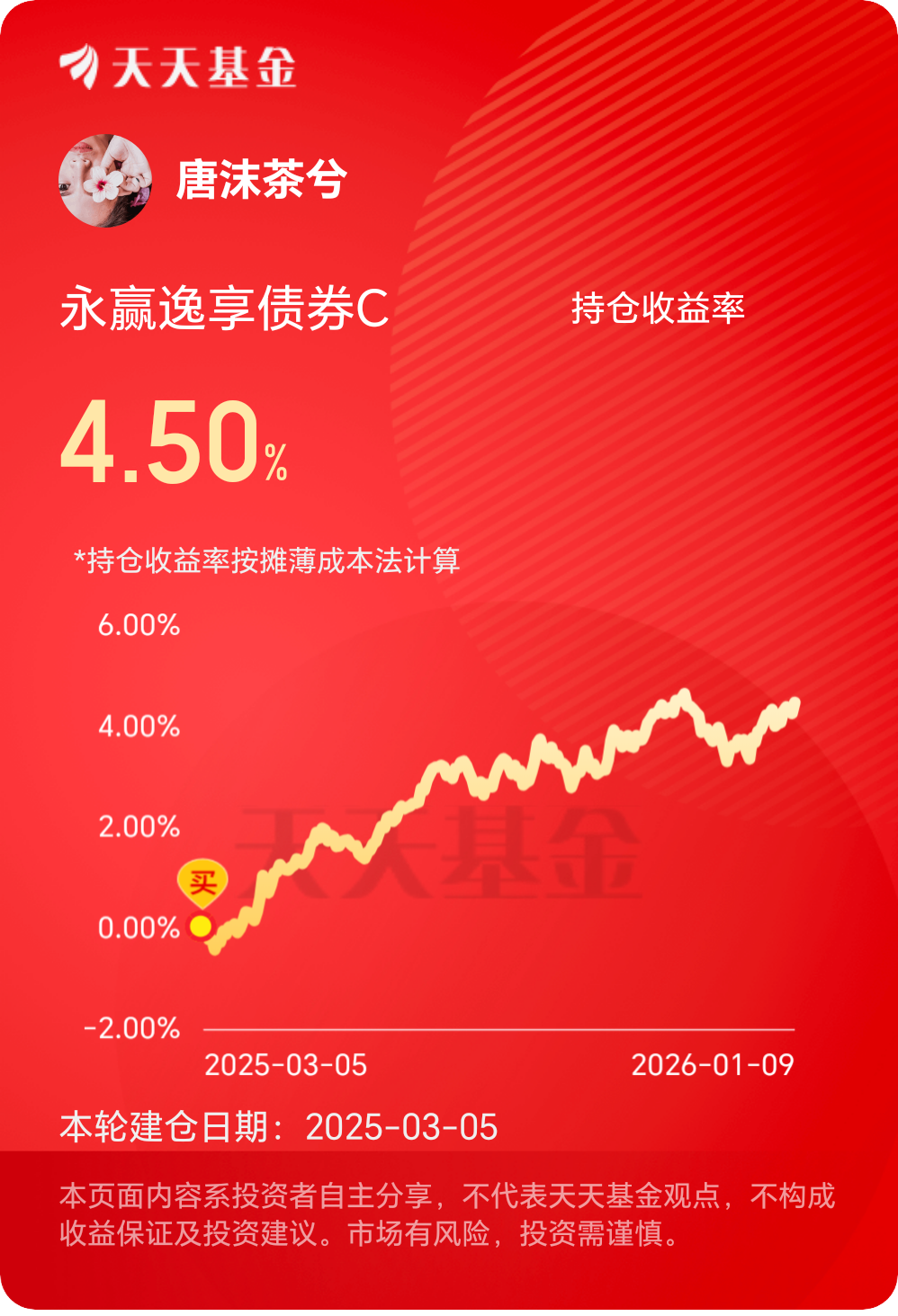 别看债券最近弱,但咱有股票顶着呢,整体还是红红火火的。$永赢逸享债券C$