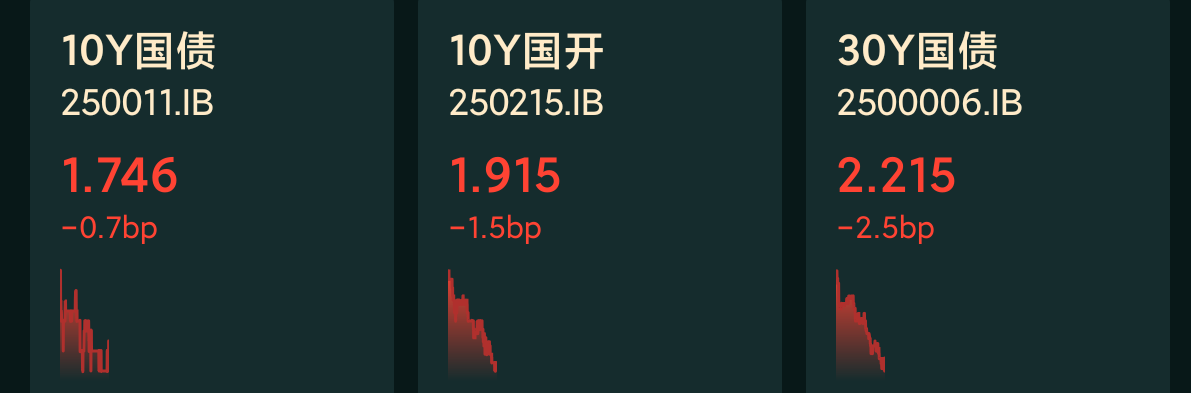十年期国债收益率:1.746%,-0.7BP(国债收益率越跌,债市越涨)