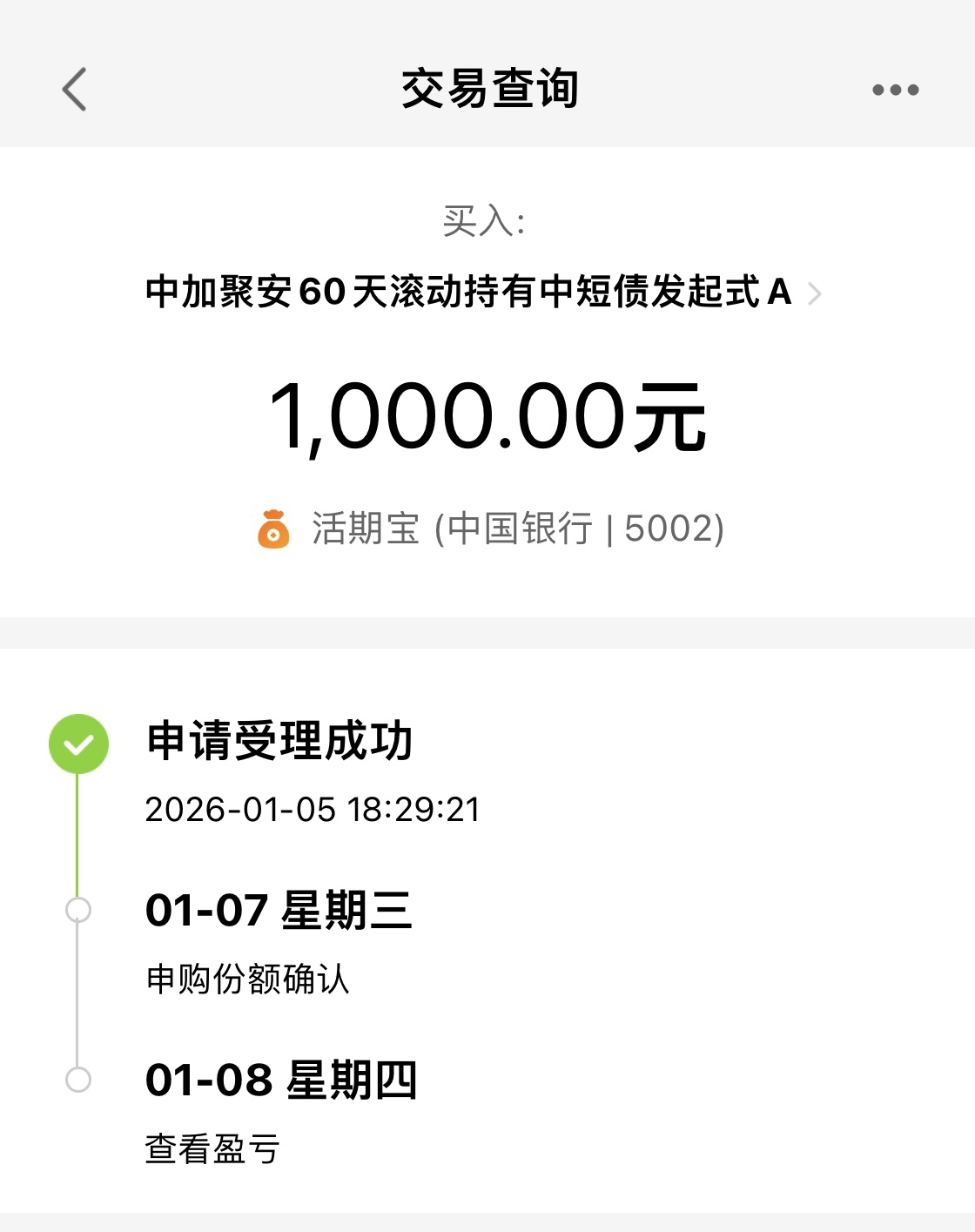 股债跷跷板,今天有点小回调正好是加仓的好时机。中加聚安中短债债基A近一年收蛋245个,波动小,产蛋多,长期坚持下来收益还是不错的