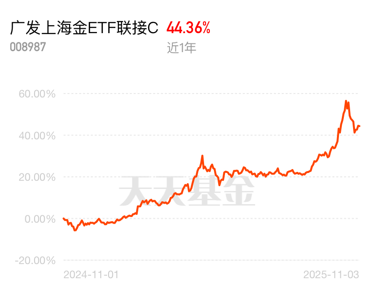 近一年能涨超40%的$广发上海金008987$真够可以的,黄金行情还没结束呢,别