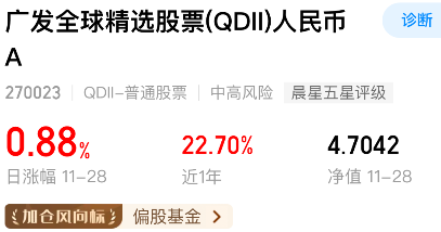 我加仓$广发全球精选股票(QDII)人民币A(OTCFUND|270023)$1000元,这只前10大重仓布局美股科技,目前额度还不少,每天可以买入5万,估计买的人挺多,最近一直在每天的加仓风向榜单中,业绩做的也挺好的,短期看今年以来涨近20%、中长期看近3年涨超131%,现在海外投资热情高涨,QDII额度紧张,这只说不好哪天也被买到没有额度了,趁这会能买可以抓紧冲,