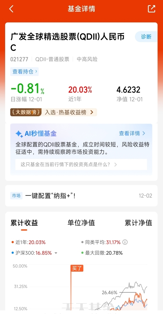 最近美股科技股调整,这基也跟着调整一点,正常,长期趋势向上就行