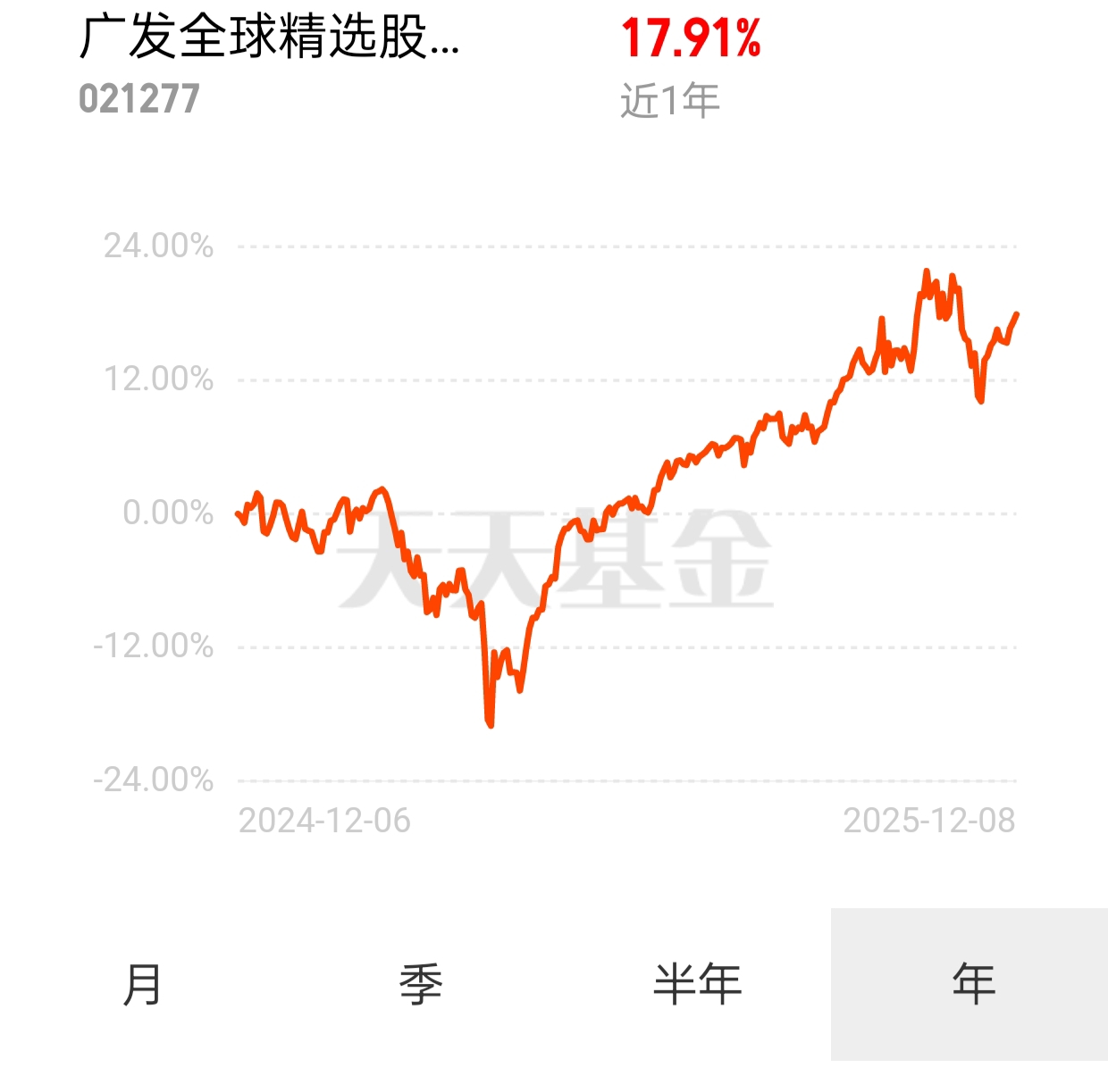 美联储如期降息25个基点,纳斯达克尾盘快速拉升,成功实现连涨,降息背景下,科技最为收益。这只$广发全球精选股票(QDII)人民币C$(021277)和纳指类似,近6个月涨幅接近17%,近一年业绩表现也要比纳指还要高,定投起来吧#摩尔线程突破800元!估值逻辑是啥?#