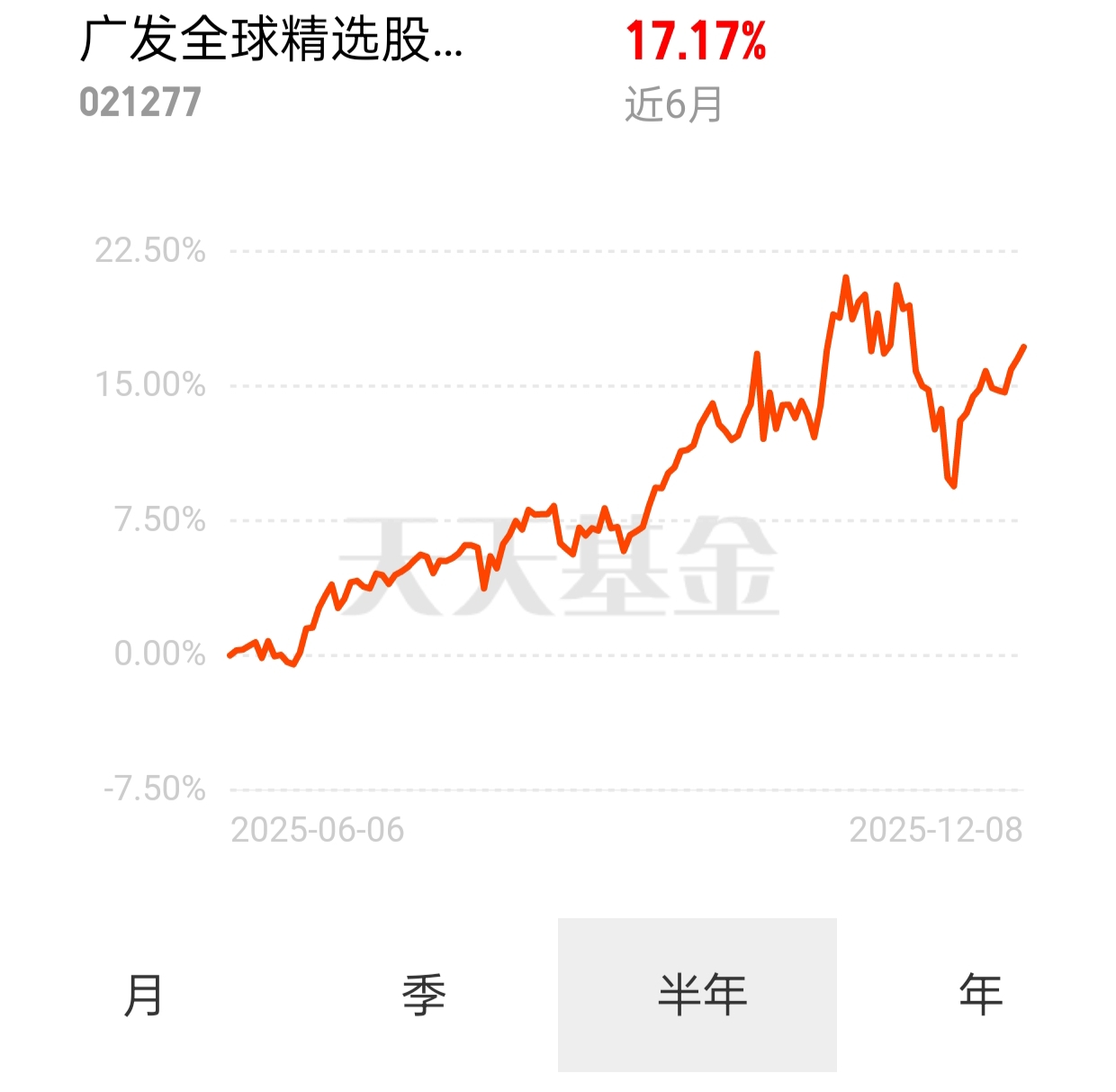 上周五在A股科技大涨的背景下,美股科技迎来大幅回调,纳斯达克跌了快2个点了。这次回调主要还是因为对于明年的降息预期不太理想导致,短期的情绪影响而已,长期趋势并没有太大影响,看来又给回调布局机会了。这只$广发全球精选股票(QDII)人民币C$(021277)和纳指类似,近一年业绩表现也要比纳指还要高,趁这个机会赶紧布局一波#【跨年坦白局】提问金梓才、陈果#