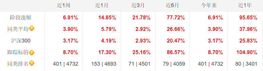 近一年大涨95.65%,跑赢同类平均超57%,市场排名前3%,表现很优秀。