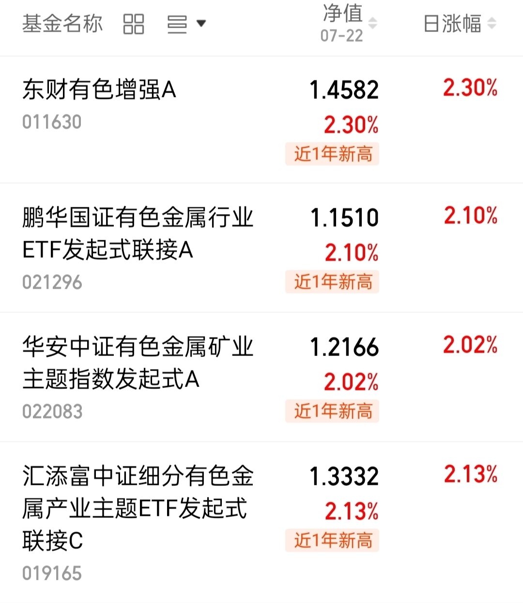 $鹏华国证有色金属行业ETF联接A$ 上涨2.10%,加油p