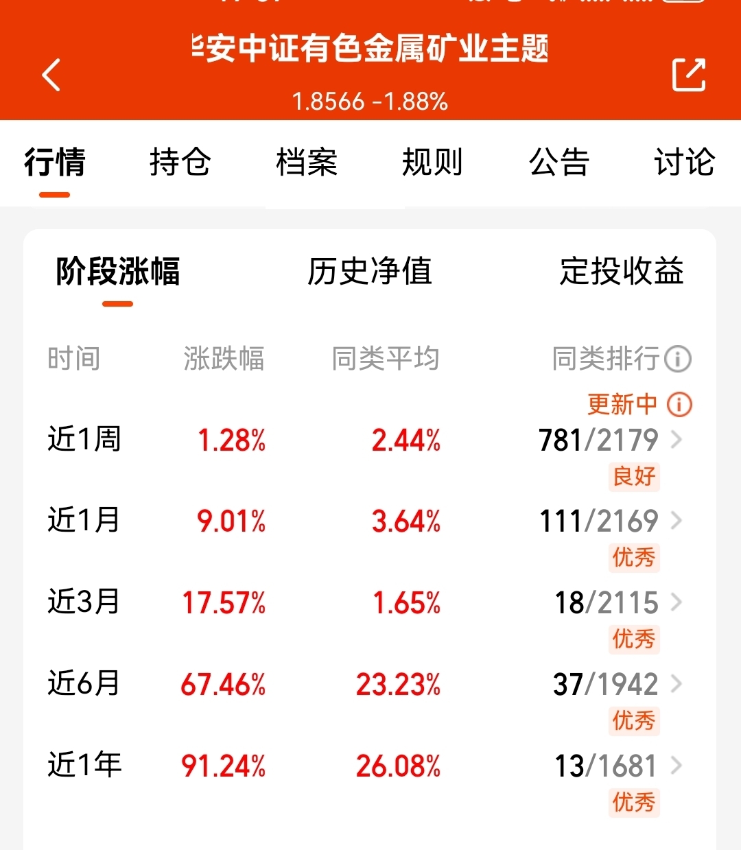 今年选对有色就赢了!$华安中证有色金属矿业主题指数发起式A$ 近一年涨超91%,精准踩中资源赛道,同类业绩拔尖,费率最低,申购还能享0折