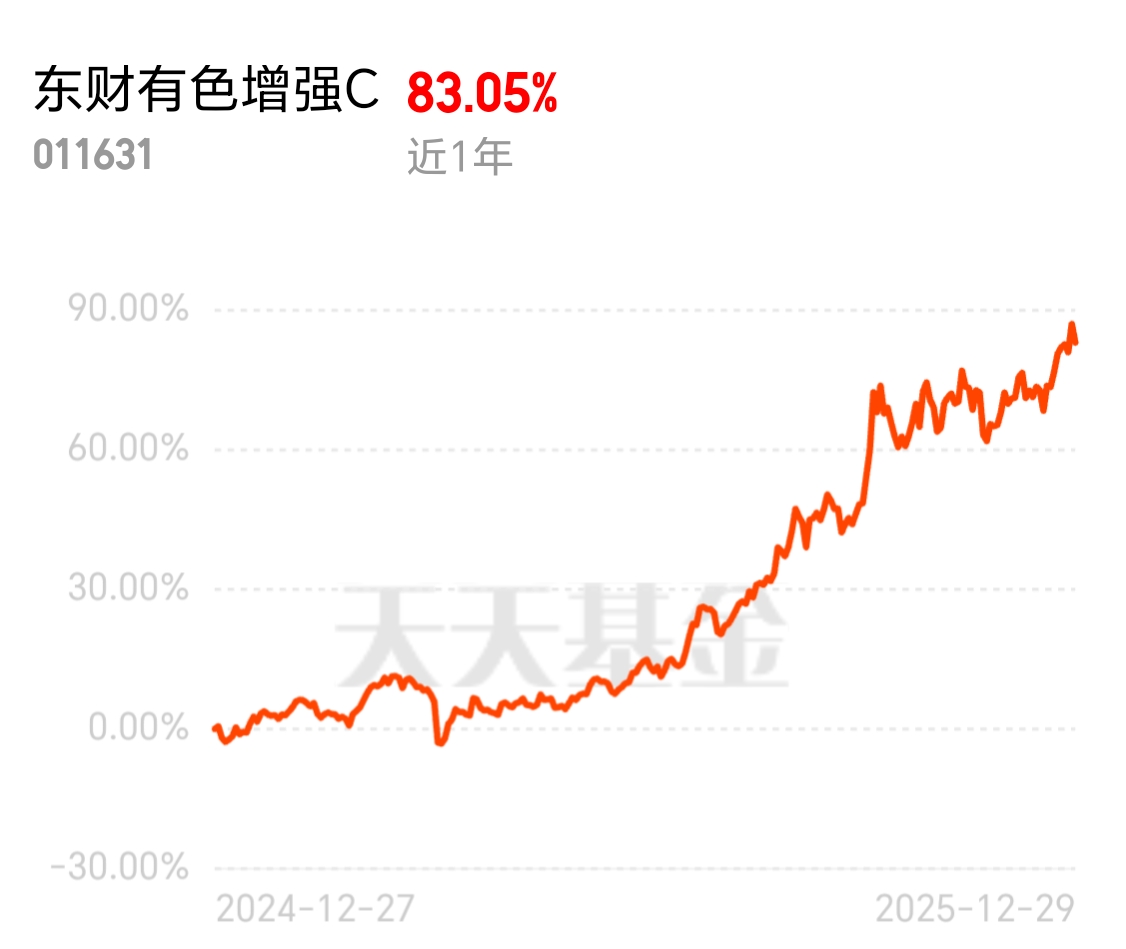 2025 年有色板块涨超 70%,白银翻倍、钴价飙涨,小金属也不甘落后。东财有色增强 C 近 1 年 83.05% 的收益很亮眼,全面覆盖热门品种,不用费心挑选就能上车。
