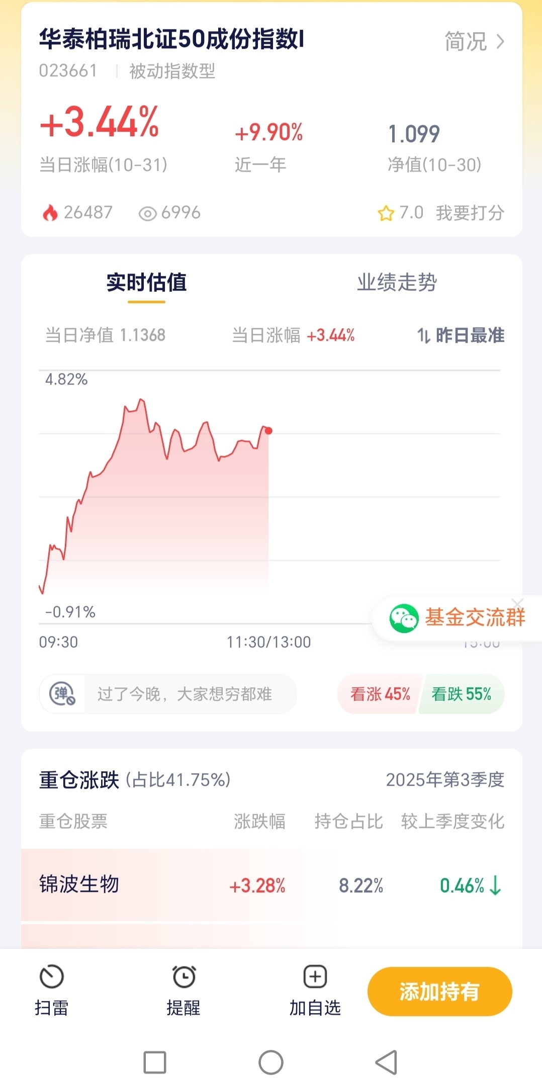 兄弟们,今天北证50表现亮眼,华泰柏瑞当日涨3.44%,近一年也有9.90%的收益。更绝的是它的I类份额,费率低到让你省心,额度还很充足,想投多少都能满足。北证现在行情这么好,跟着华泰柏瑞布局,费率低、额度够,赚钱的车赶紧上!#美联储再次降息!12月降息与否难料# $华泰柏瑞北证50成份指数I$