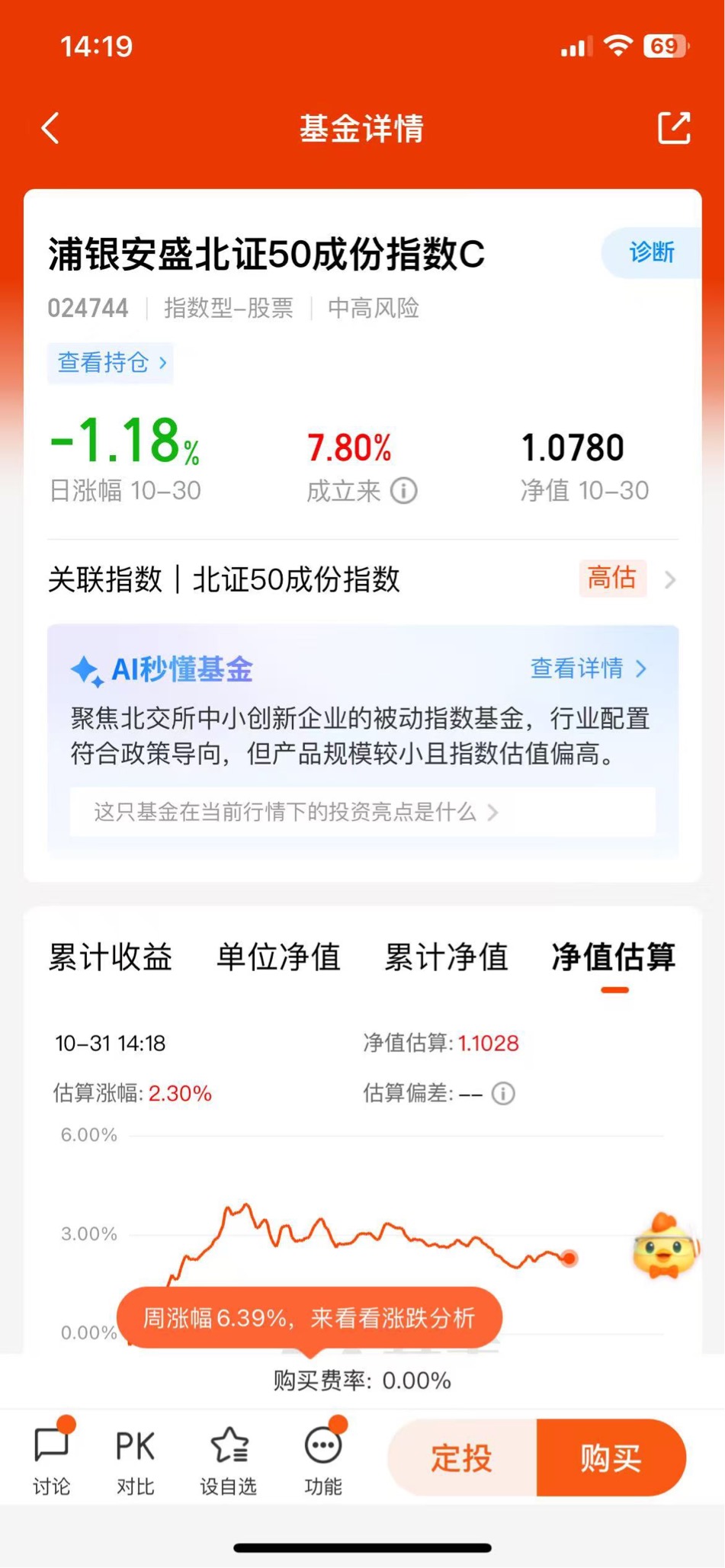 不限额的北证50给大家找到了,$浦银安盛北证50成份指数C$ 跟踪紧密,成立以来跑赢指数