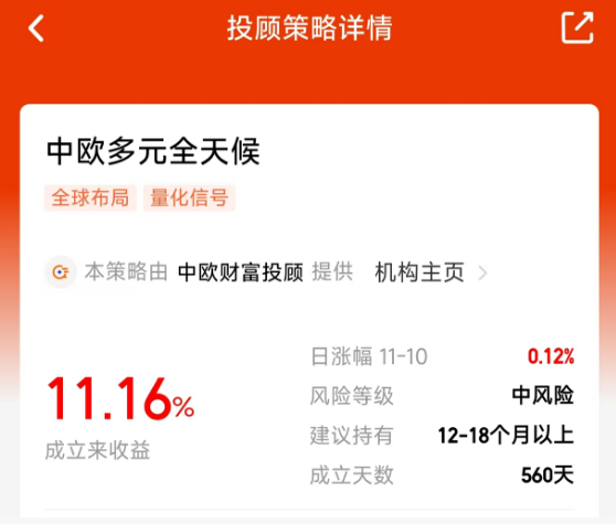 净值波动太大会影响投资心态。我一直在寻找波动更小、持有体验更佳的产品,后来在天天基金投顾管家的“三笔钱投顾”板块发现了中欧多元全天候组合。它的策略很明确:不赌单一市场方向,而是将资金分散到全球关联度较低的不同资产中(如A股、债券、商品等),以此平缓整体波动。这个思路借鉴了桥水的全天候策略,并针对国内投资者做了优化。它近一年8.62%的收益或许不是最高的,但最大回撤仅2.02%、波动率2.75%的表现,说明其风控相当出色。在当前市场环境下,这种追求稳健增值的方式值得关注。#科技小登大揭秘#