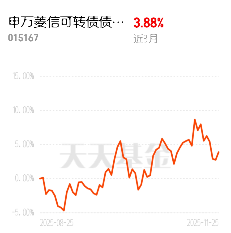 市场忽涨忽跌让人没头绪,经不起大起大落的朋友,申万菱信可转债C是优选。固收打底控风险,权益增强提收益,投的有色、电子正热门,近3个月3.88%,排名都快冲到市场前10了。
