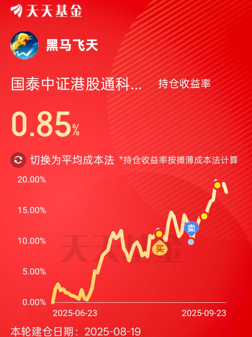 A股科技又疯了,半导体芯片大爆发,国证芯片、科创芯片等指数狂飙超6%,这个时候重仓追击并不合时宜,它可能继续大涨,也有可能随时来个类似于昨天的大跳水,甚至阶段性调整。港股科技今天相对温柔,加仓一笔中线持有的$国泰中证港股通科技ETF发起联接C(OTCFUND|015740)$,这只基上车较晚,刚有一点点收益,今天继续吃肉。