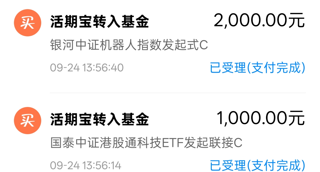 今天加仓机器人、港股科技,无卖出操作,所有中线标的继续持有待涨。