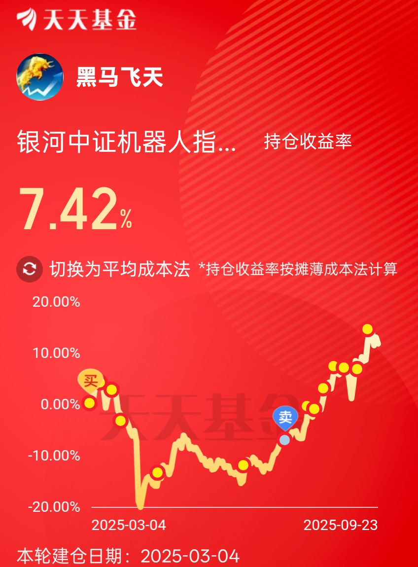 $银河中证机器人指数发起式C(OTCFUND|021302)$今年3月份上车,中间做了一次T,目前浮盈7.42%,今天加仓一笔,中线周定投继续。