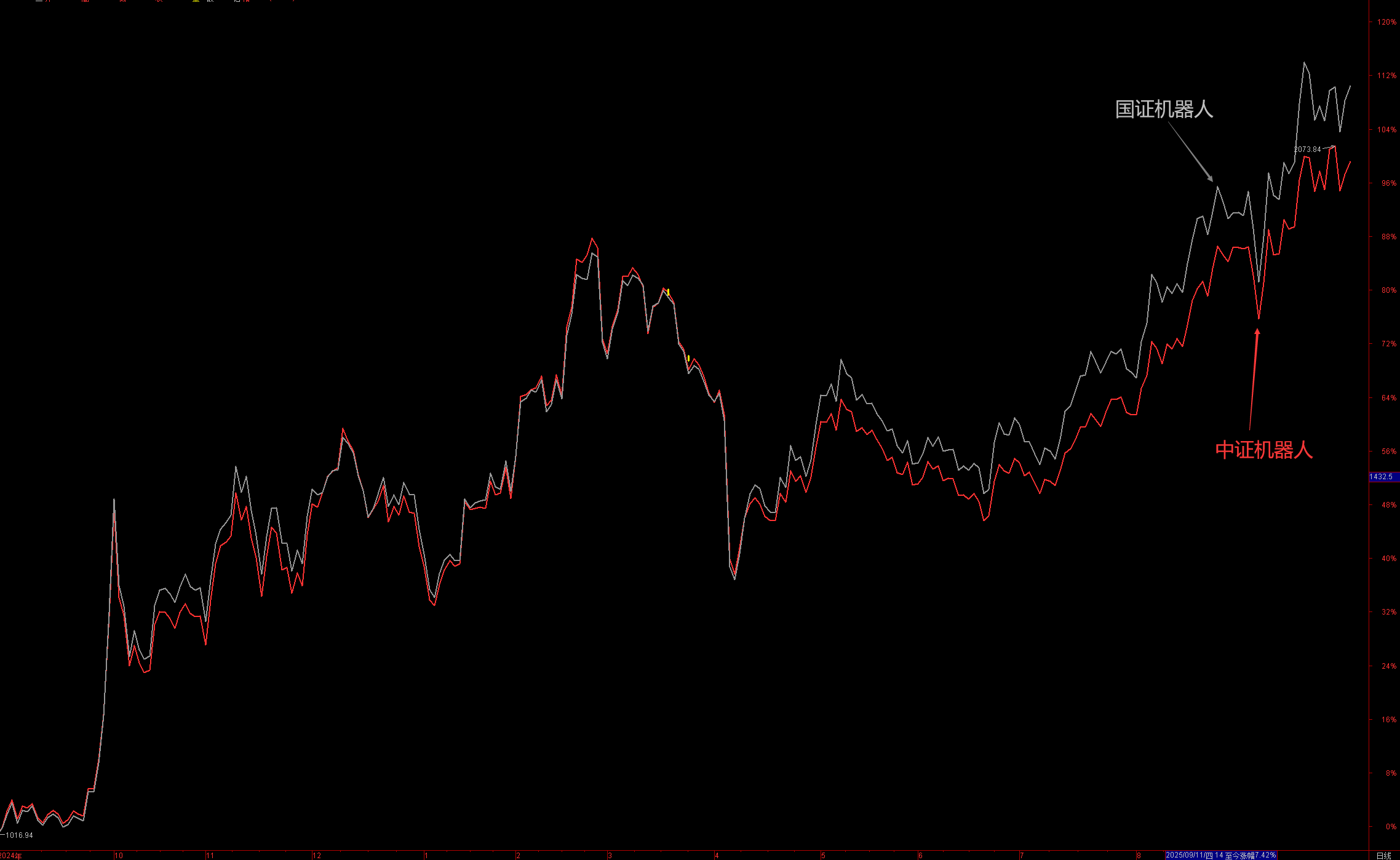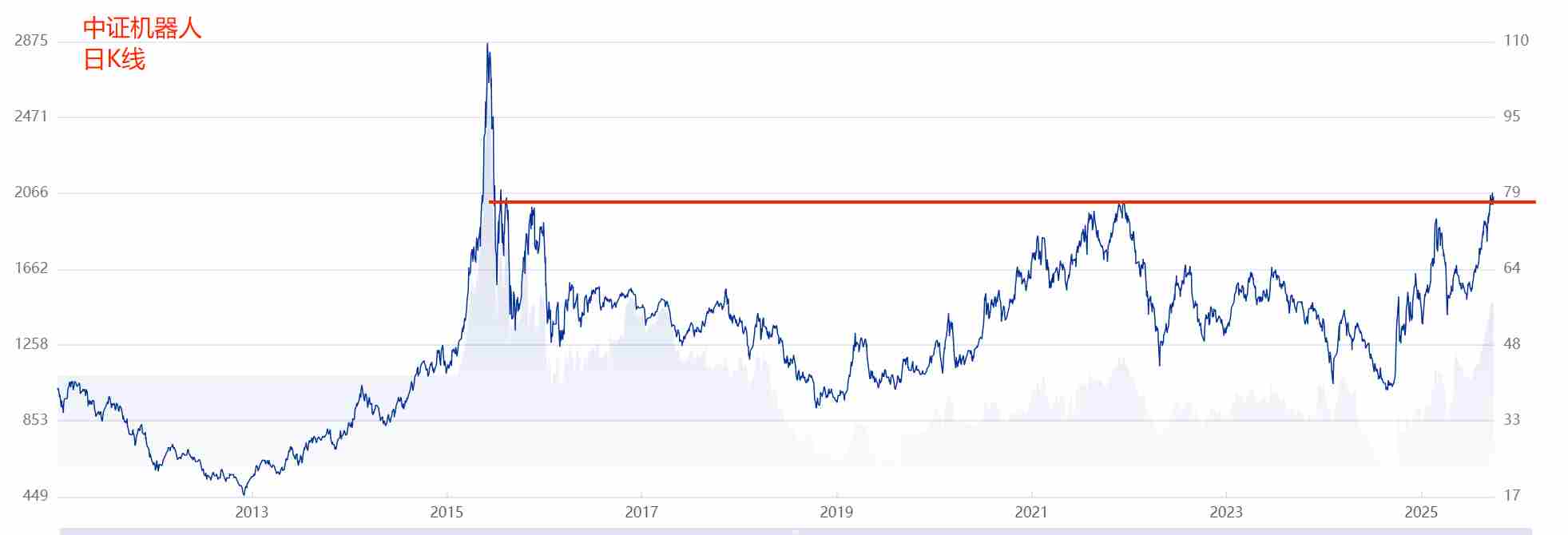 行业成长潜力巨大、发展动力十足、产业链趋势向好,牛市仍走在半途,机器人板块在这红线处形成历史性大顶的可能较小,反而中线行情很值得期待。