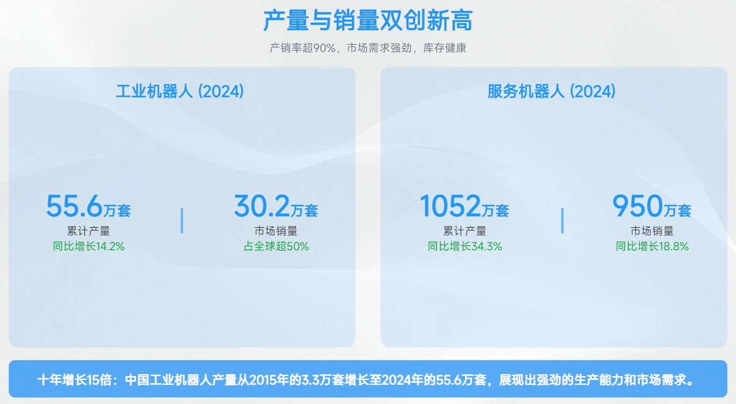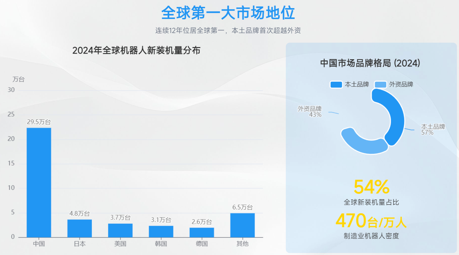 2024 年工业机器人新装机量 29.5 万台,占全球总量的 54%,创历史新高。