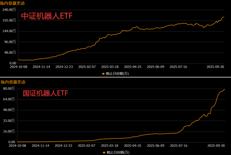 资金流速上:今年7.15日之后,份额增速上国证机器人ETF要比中证机器人ETF快很多,资金加速流入后者。