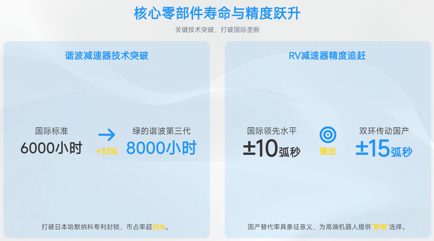 •绿的谐波第三代谐波减速器寿命达 8000 小时,较国际标准提升 33%。