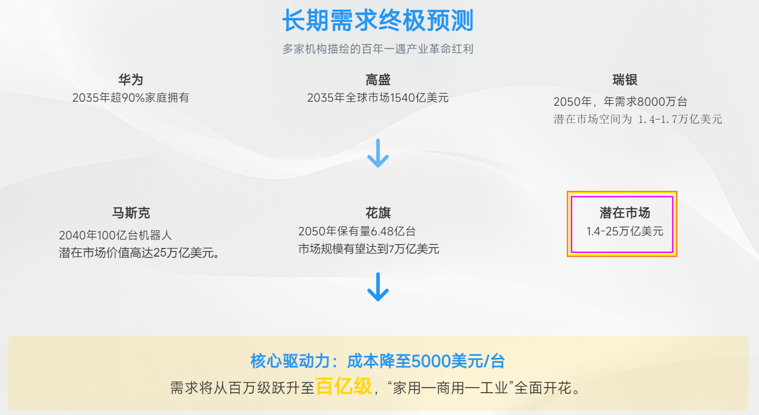 瑞银证券:到2050年,全球年度需求量将达到 8000多万台,全球潜在市场空间为 1.4-1.7万亿美元。