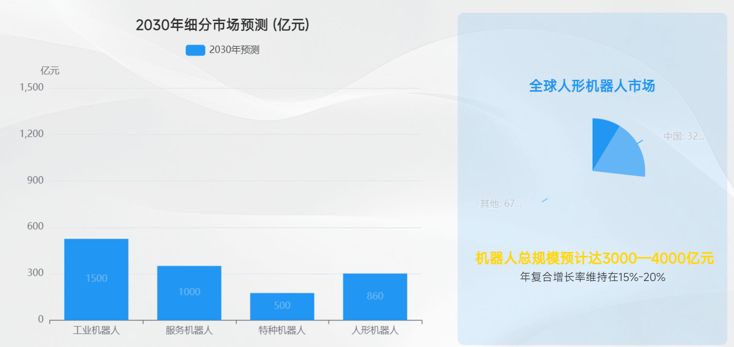 服务机器人:预计达到 1000 亿元,占整体市场的 33%,年复合增长率有望突破 25%。