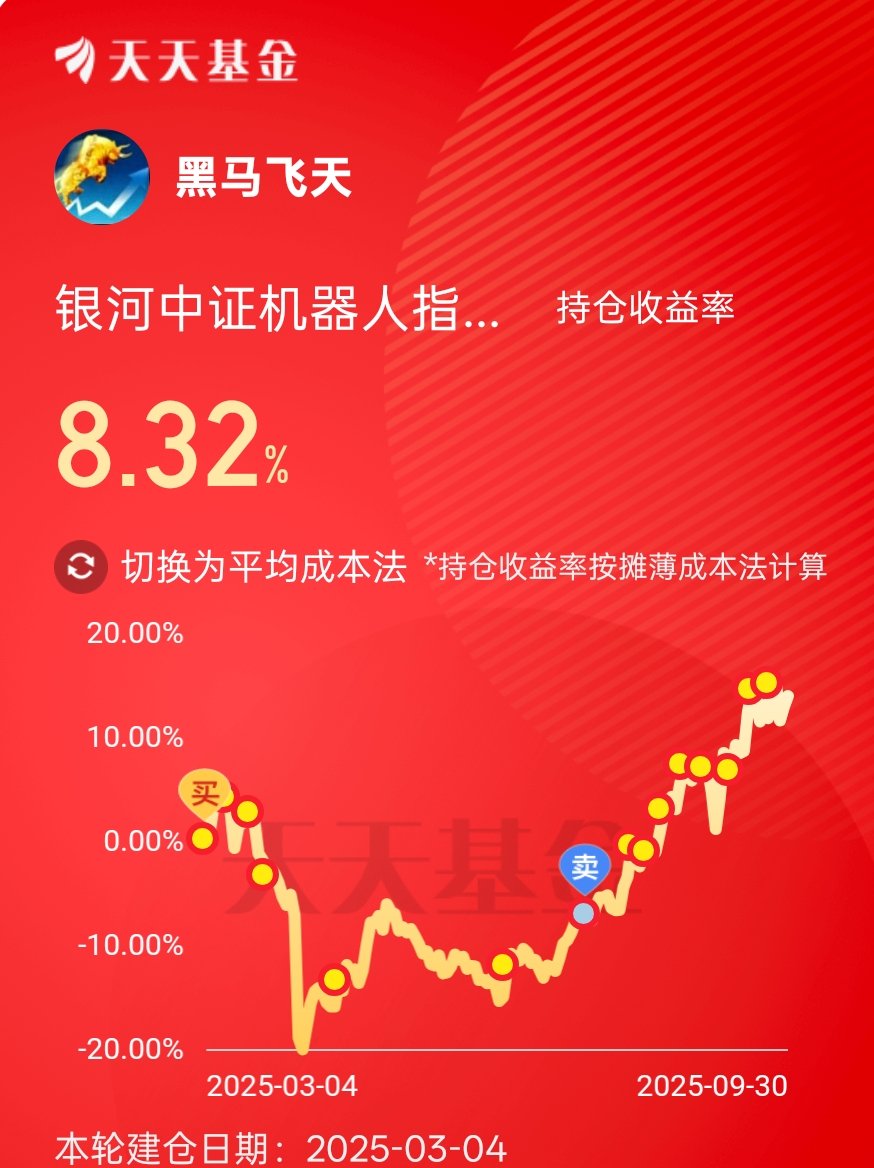 个人操盘策略:中线大有潜力,但估值不在低位,重仓追击过于激进,黑马采取底仓加定投方式来把握。如有调整继续低吸手中的$银河中证机器人指数发起式C(OTCFUND|021302)$ ,如拒绝调整以周定投应对。
