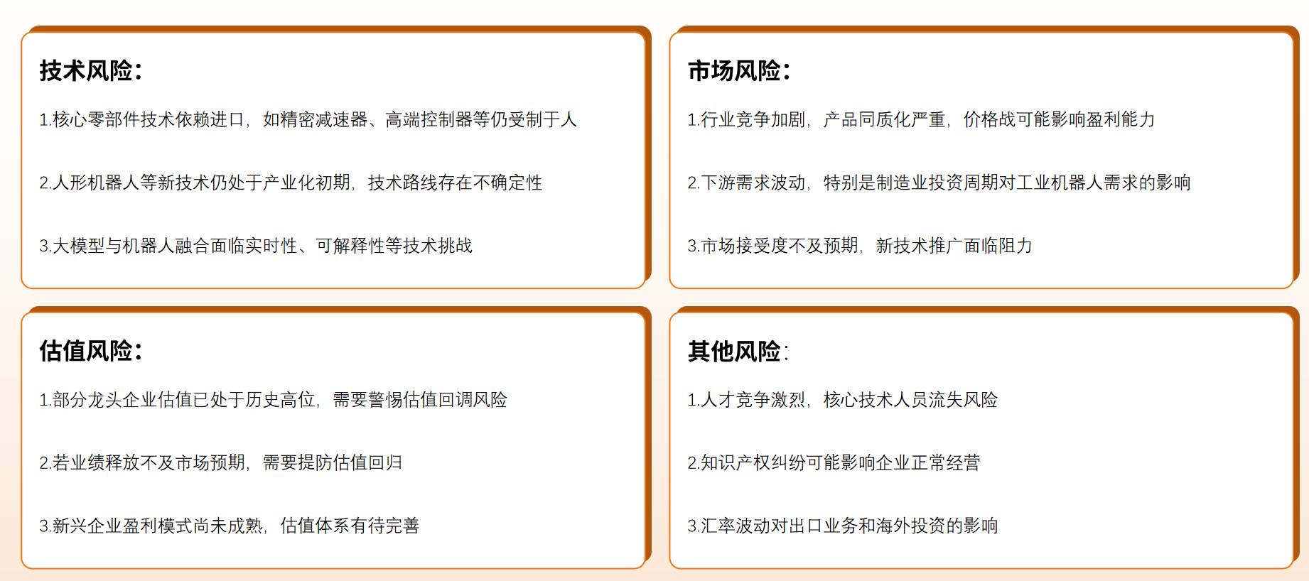 技术引领:关键技术不断取得新突破,AI 大模型技术的突破性进展为机器人注入 "灵魂",技术创新与市场需求的双重爆发,机器人从单一功能向智能化、通用化方向快速演进,人形机器人开启量产元年。