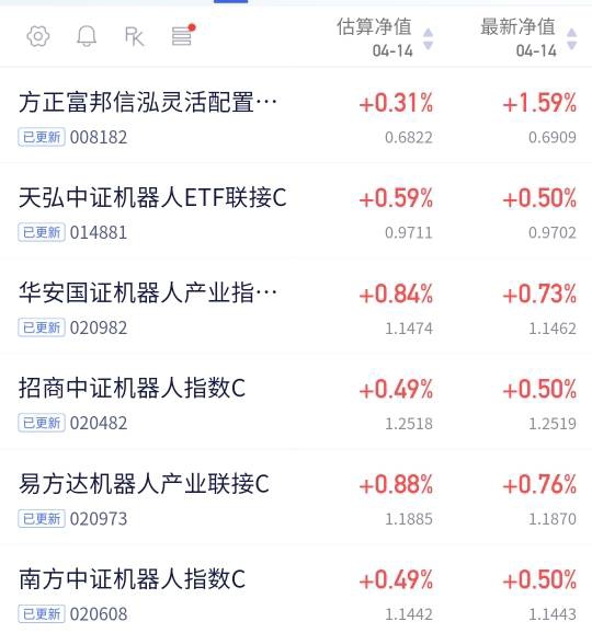 $天弘中证机器人ETF发起联接C$ 今晚涨0.50%