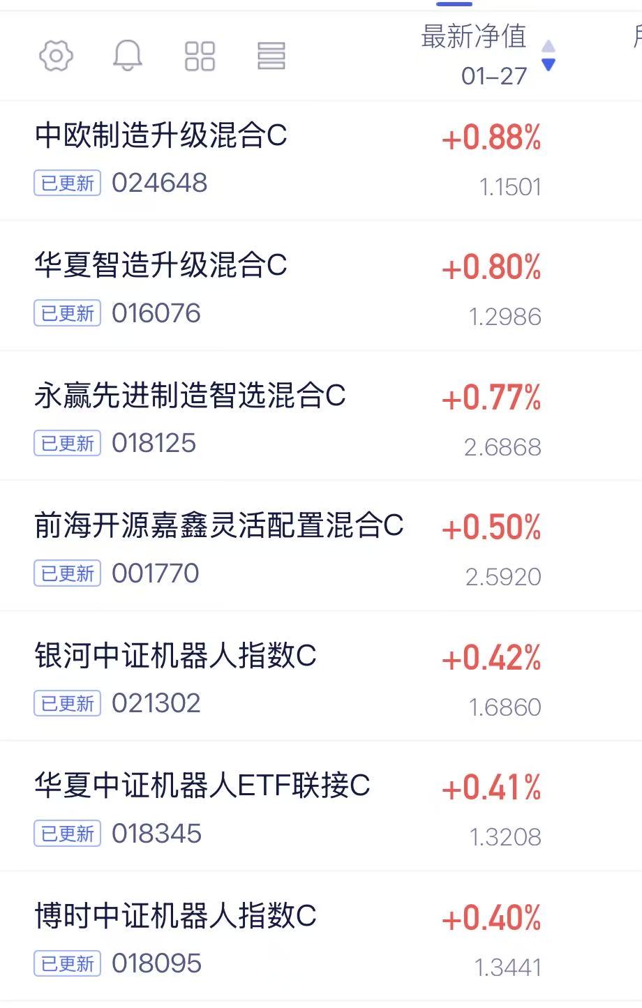 中欧制造升级 今天上涨0.88%,比一众同类基都能涨一些