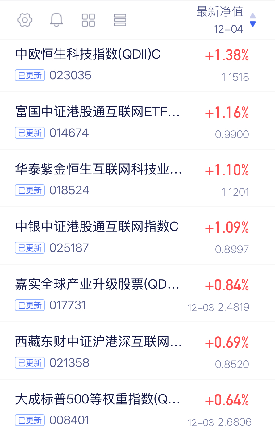 $中欧恒生科技指数发起(QDII)C$ 今天上涨138%,在港股科技指数里面亮眼