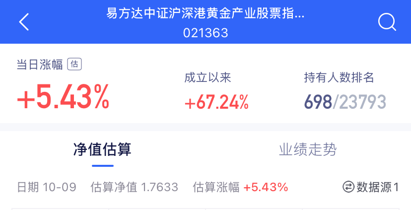 今天股市开门红,沪指站上3900,黄金也同步创新高,目前黄金仍在强势周期,尤其是在牛市中黄金股的上涨弹性会更大,其中$易方达中证沪深港黄金产业股票指数发起式C(OTCFUND|021363)$估值+5.43%,短期业绩涨幅均优于同类产品,值得期待的!$国泰黄金ETF联接C(OTCFUND|004253)$$易方达黄金ETF联接C(OTCFUND|002963)$$永赢中证沪深港黄金产业股票ETF发起联接C(OTCFUND|020412)$#沪指盘中突破3900点!什么信号?##国际金价史上首次升破4000美元大关##10月基金投资策略#