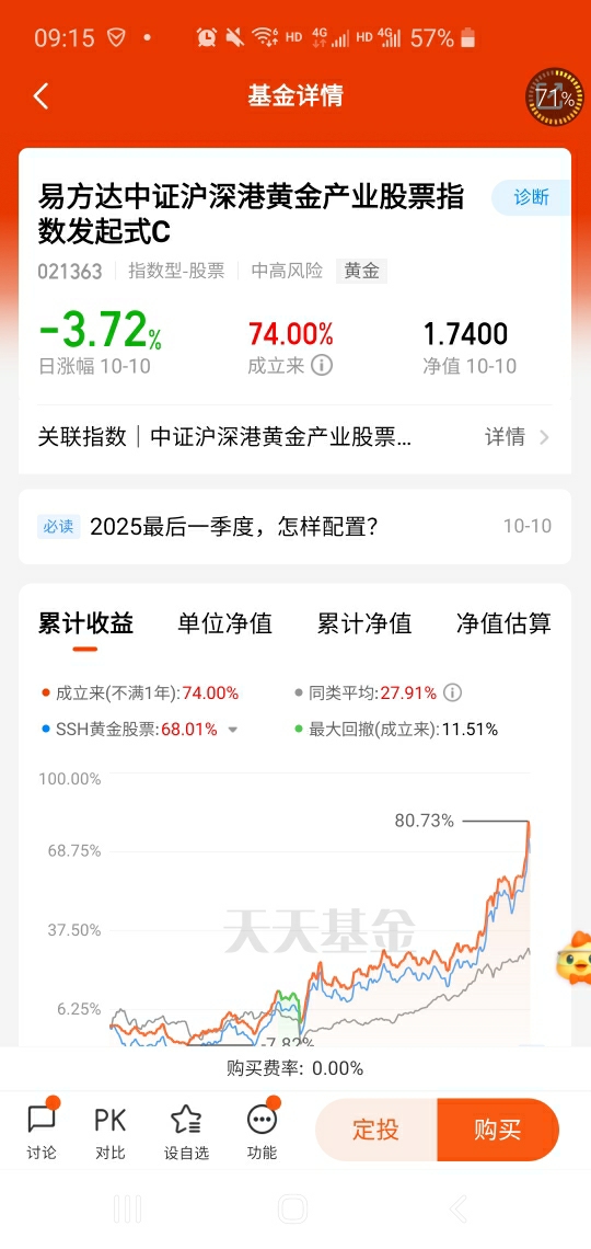 同时,国庆期间,黄金又又又大涨啦!突破4000美元/盎司,打开了人们想像的大门。第4季度,我依然看好黄金的投资机会。美联储进行降息周期、地缘政治风险、贸易摩擦、央行持续买入黄金等多重因素,黄金的避险需求将进一步爆发。我将密切关注$易方达中证沪深港黄金产业股票指数发起式C(021363)$,择机上车!@易方达基金