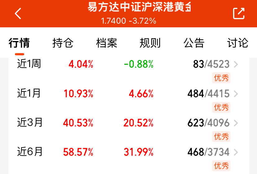 今天大盘继续回踩,创业板指跌幅超3%,由于短期中美在多个领域博弈加剧,从而市场波动加剧,这时候黄金避险价值愈发凸显,行情独立有助于风险分散,感觉$易方达中证沪深港黄金产业股票指数发起式C(OTCFUND|021363)$不错的,近半年涨幅58.57%,可以适当布局一些!$国泰黄金ETF联接C(OTCFUND|004253)$$永赢先进制造智选混合发起C(OTCFUND|018125)$$广发国证新能源车电池ETF联接C(OTCFUND|013180)$#稀土价格暴涨37%!稀土板块狂飙##券商把脉:冲击小于4月 黄金坑再现?#